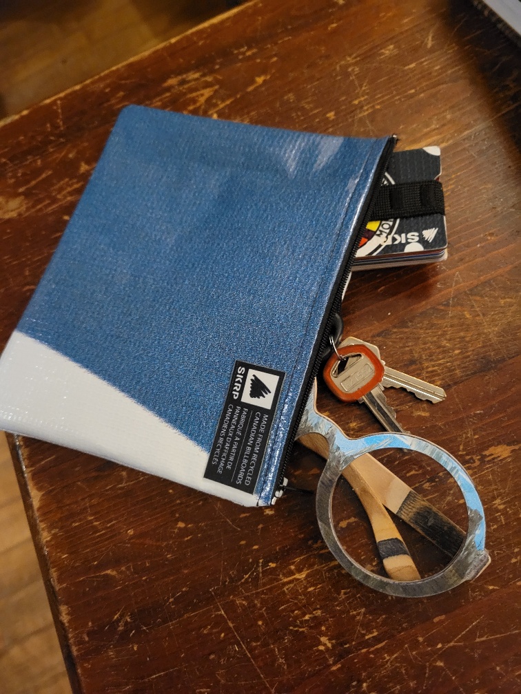 Versatile storage solutions crafted from rescued Canadian billboard materials. From compact cycling pouches to book-sized carriers, find the perfect size for your needs.