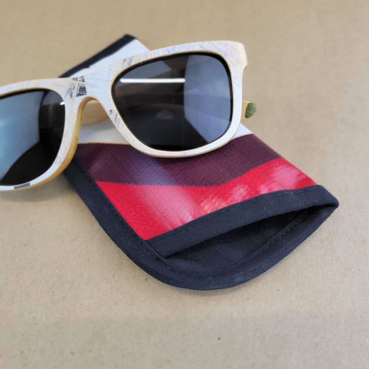 Handcrafted from Canadian recycled billboards and lined with soft deadstock fabric. Keep your sunglasses, readers, and eyewear scratch-free and secure in style.