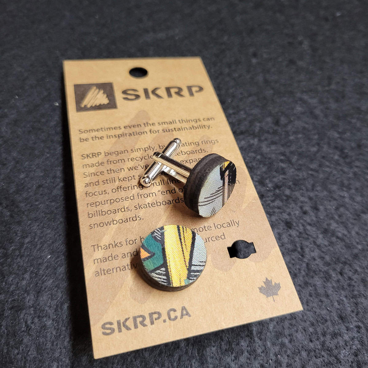 Premium cufflinks crafted from skateboard remnants – where zero waste meets luxury accessories