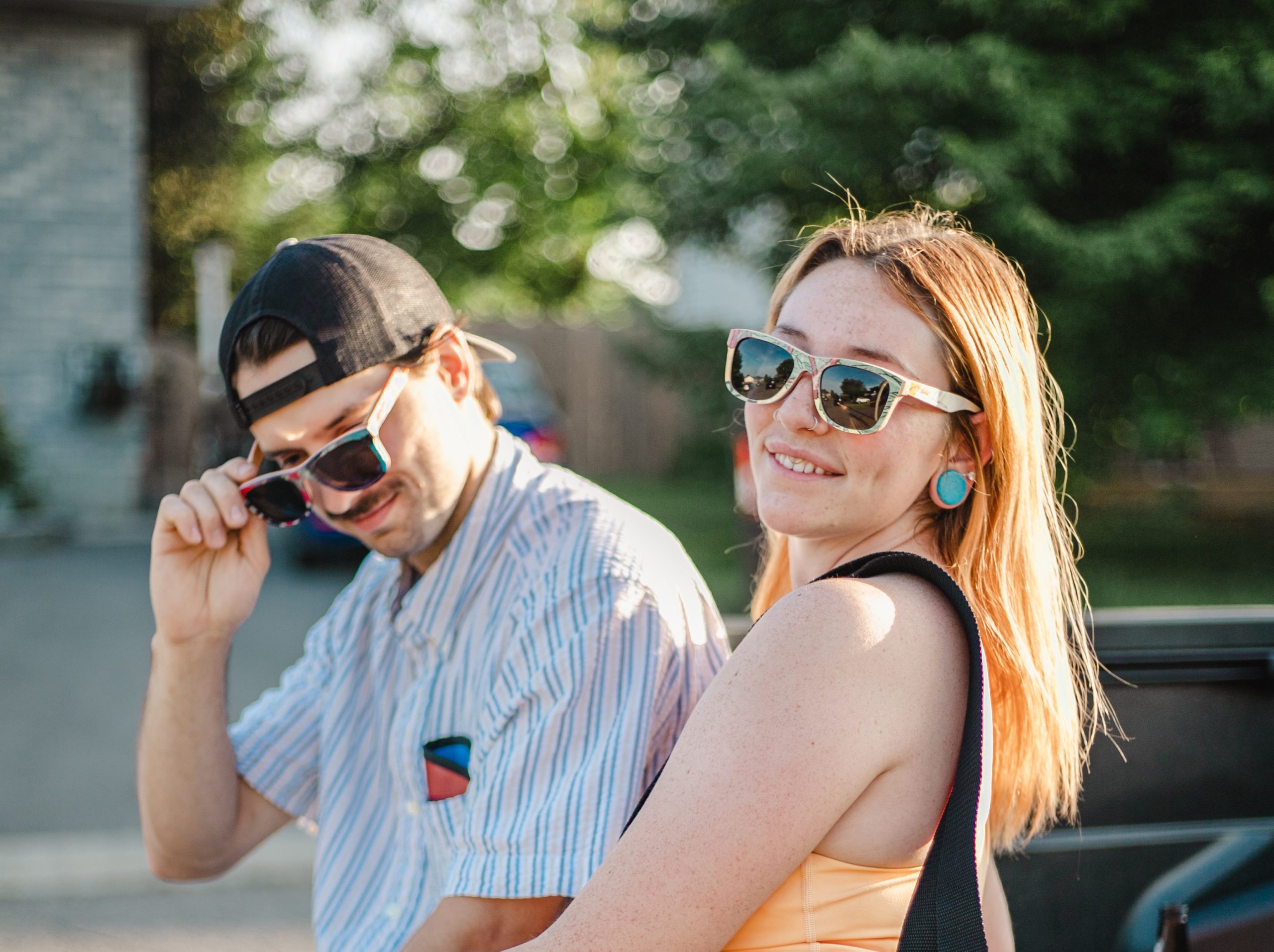 The bold, angular design of wayfarer frames perfectly showcases the vibrant graphics and unique grain patterns found in skateboard maple, creating sunglasses that are as individual as the skaters who rode the decks.