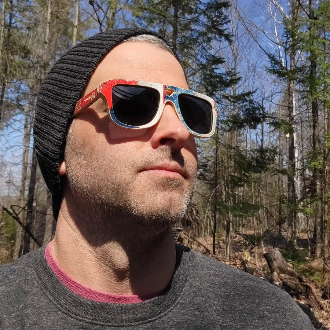 The wayfarer silhouette has been an icon since the 1950s, worn by rebels, artists, and adventurers. Now we’ve given this classic a mountain makeover – crafted from genuine retired snowboards sourced from both premium Canadian slopes and Colorado’s finest manufacturers like Donek Snowboards.