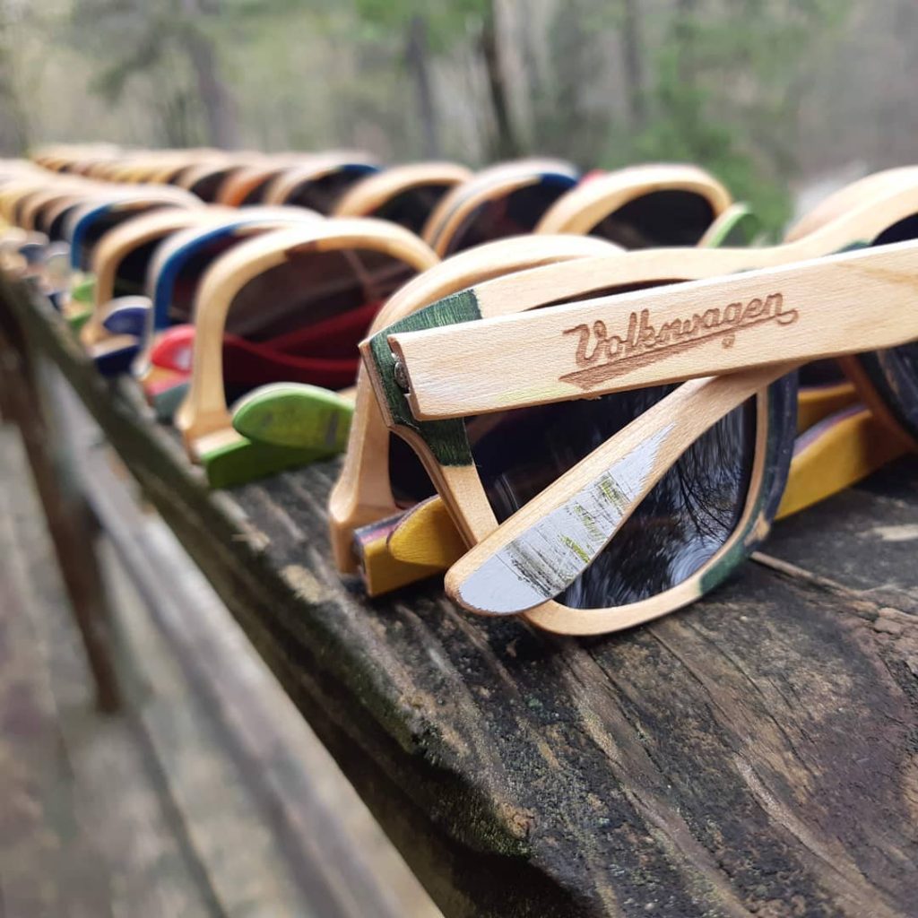 Created 100 unique recycled skateboard sunglasses and 100 recycled snowboard bottle openers for VW’s sustainability initiative. Each piece showcased different skateboard graphics, making every gift one-of-a-kind.