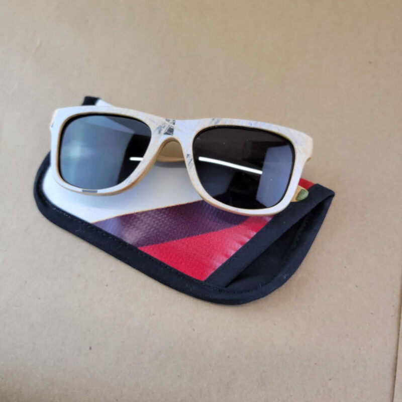 Our signature sunglasses come with cases crafted from vibrant Canadian billboard materials that have been given a second life. Each case features unique graphics and colours from real advertising campaigns, making every piece completely one-of-a-kind.
